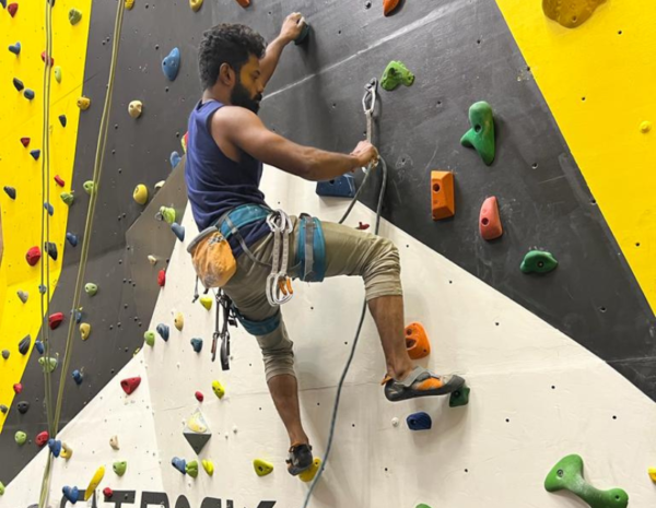 In Pallikaranai, we have both bouldering and top rope climbing walls, the gym has a 32-foot-high wall for top rope and lead climbing and a 12-foot-high wall for Bouldering.